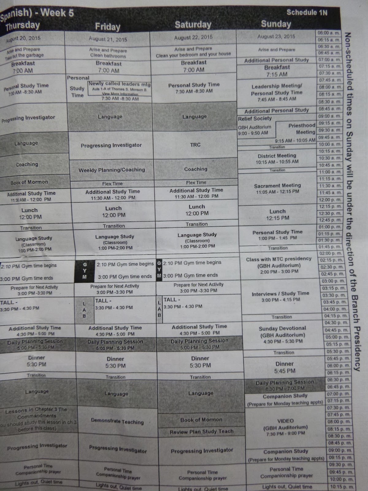 Pdays (preparation day) are nice.... my companion and I do our laundry the night before so that's always done first.... we wake up at 630 still, go eat breakfast, come back, clean the house, and sleep for another hour or so.... basically until everyone else is done with chores, then we go all play volleyball or basketball like all day!!
